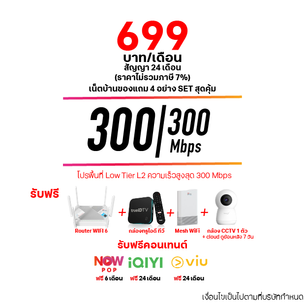 เน็ตบ้านของแถม 4 อย่าง SET สุดคุ้มพื้นที่ Low Tier 300/300 Mbps